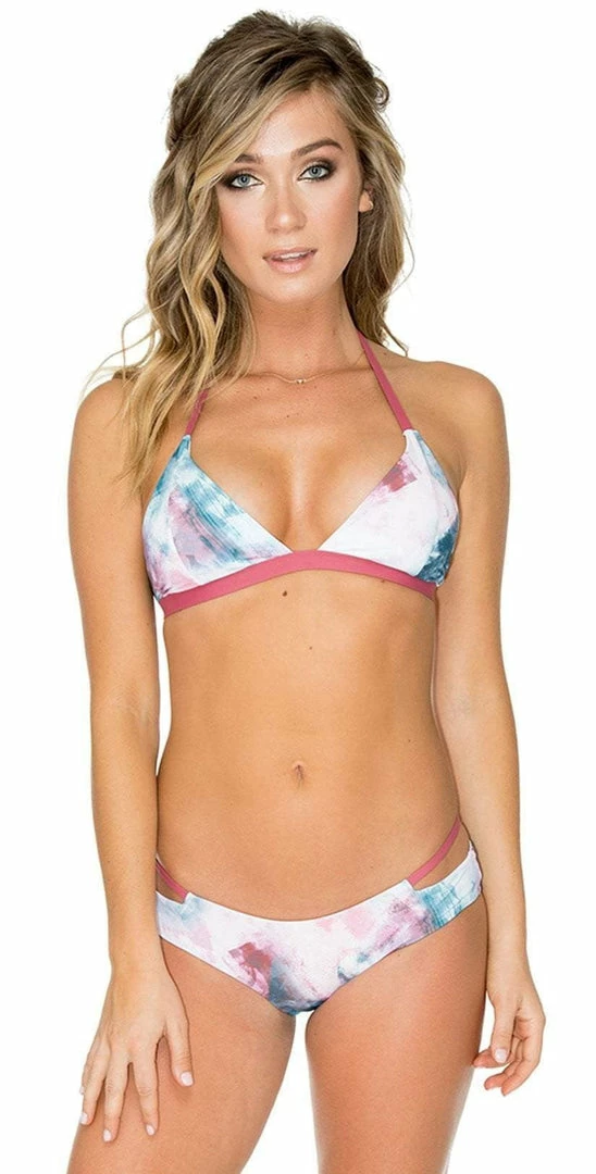 The Aerin Rose Minerals Vista Tri Top is a stationary triangle top with delicate blue and pink colors and a solid rose colored band. This adorable top offers an adjustable band and also ties at neck for a super comfortable fit. Check out the matching Aerin Rose Mineral Arlo Bottom.