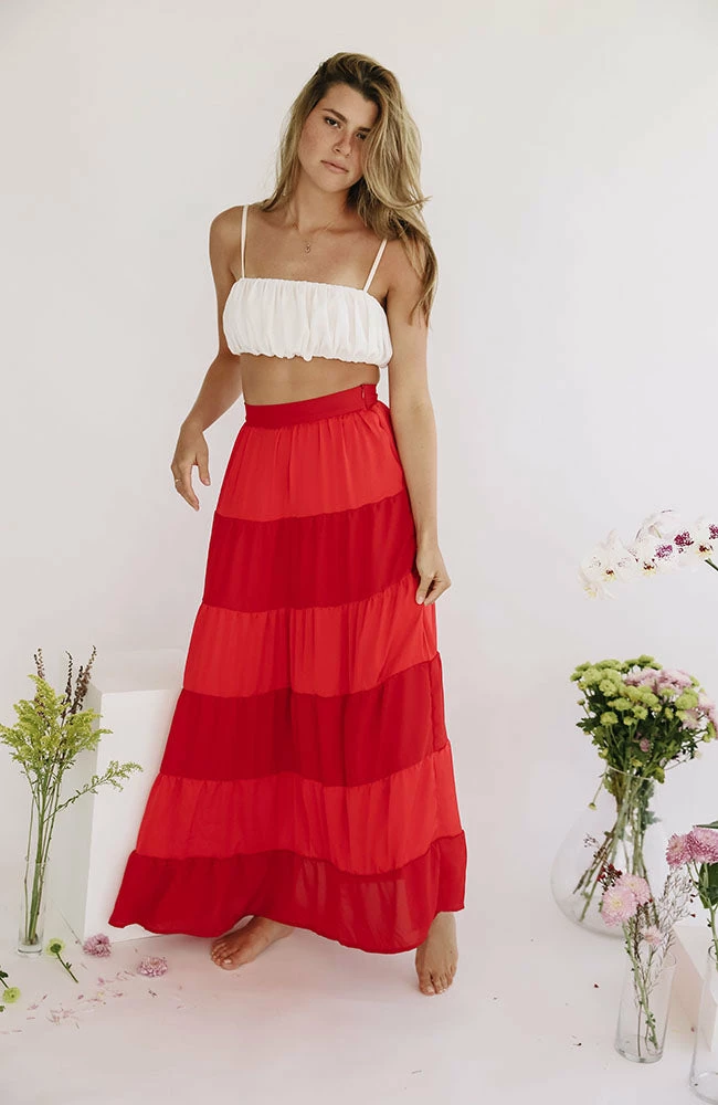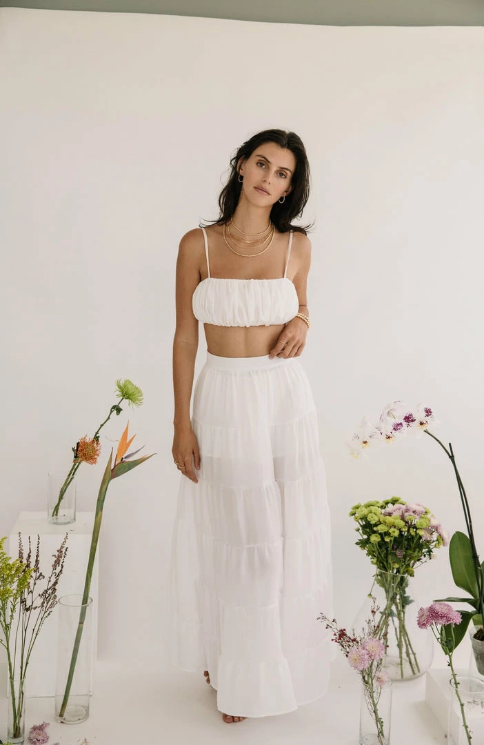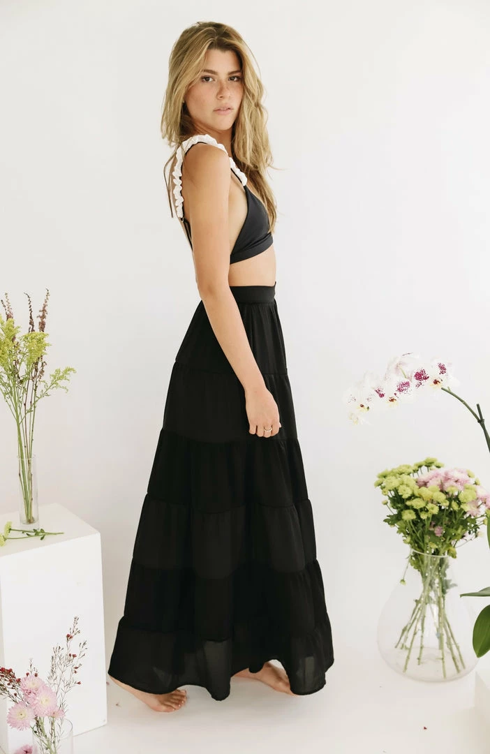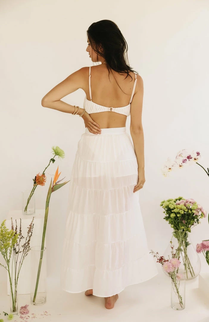 The Rania Skirt is an ultra lightweight maxi skirt perfect for the warmer weather. This maxi skirt is fastened with a hidden back zipper so it is easy to slip on/slip off and features ruched panels to give this high waist piece movement and shape. Pair with the Akalia Swimwear Isabelle Cropped Blazer.