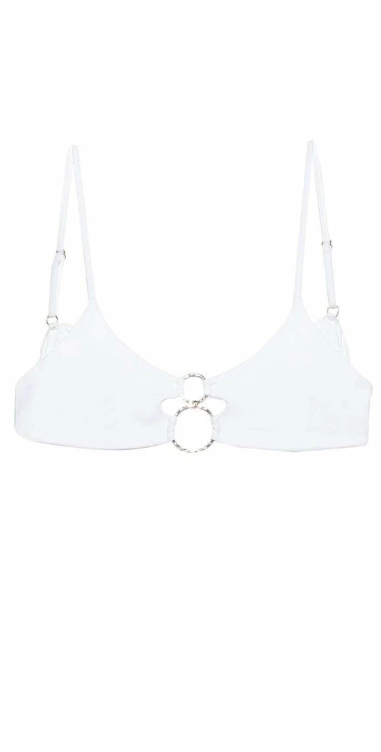 This Beach Bunny Lexi Bralette in white is a simple and chic bralette style top with gold ring detail in the middle to give you lift and support, this piece is a must have for a sexy look this summer season!