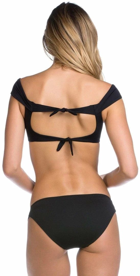 The Becca Color Play American Fit Shirred bottoms are a low rise bottom with shirred hip tabs for a flattering fit. This bottom is lined and offers full coverage. Shop the matching Socialite Portrait Off The Shoulder Top In Black here.