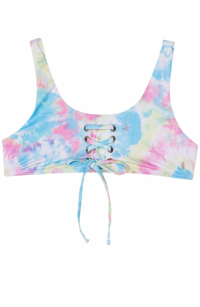 The PQ Swim Groovy Girls Lace Up Bikini is a fun colorful tie dye bikini perfect for th beach or pool.