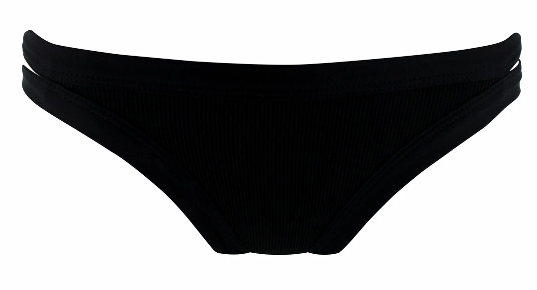 The ultra chic Charlie Bottom by L Space comes in black and white color with strappy side details. This hipster is low rise, and offers moderate back coverage.