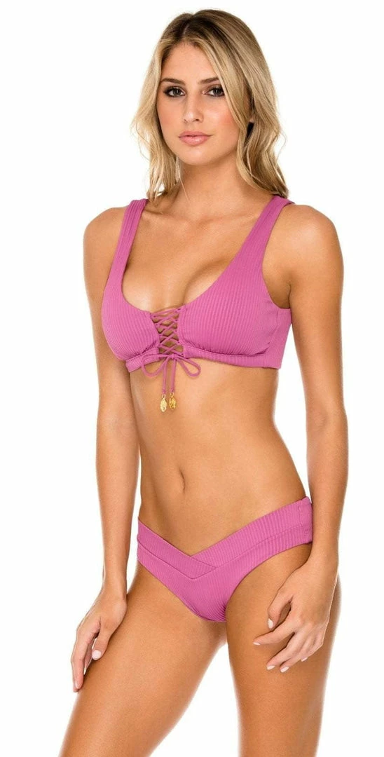 Luli Fama Orillas del Mar Lace Up Bralette Bikini Top in Raspberry L500N51 481