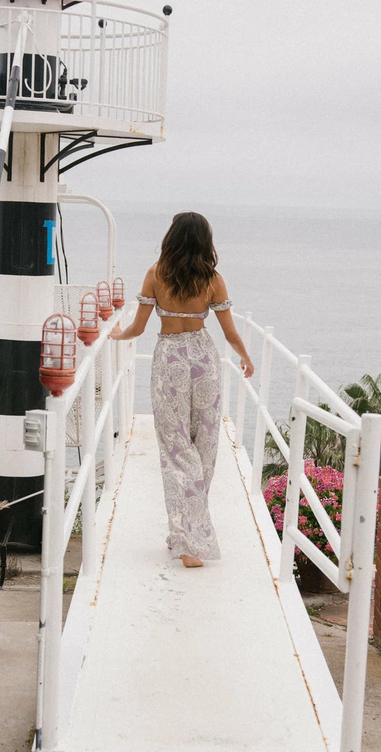 The Montce Swim Lilac Paisley Boho Pants are cute and comfy, with a loose fit, a wide leg and a drawstring detail. Perfect to throw over your favorite Montce Swim bikini or pair with a strappy sandal and a tank top.