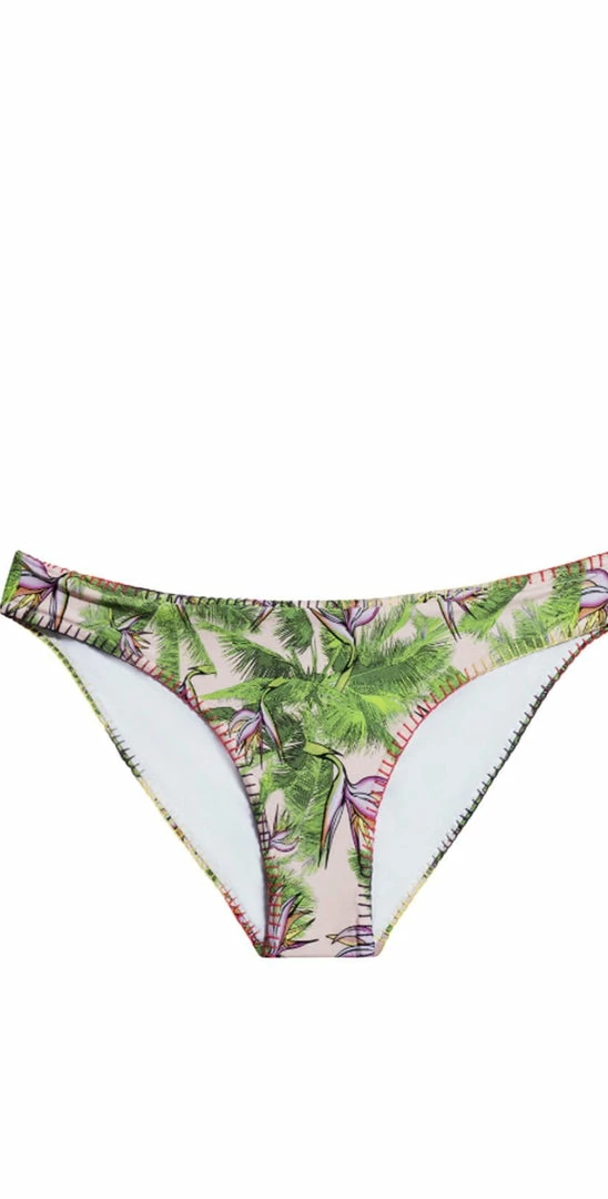 The PilyQ Bermuda Stitched Bottom is a pink and green floral palm print design featuring a stitch design along the hem. Its low rise style offers you beach babes full coverage in the back but with a ruched detail for that flirty touch! Pair with the Bermuda Stitched Triangle Halter Top.