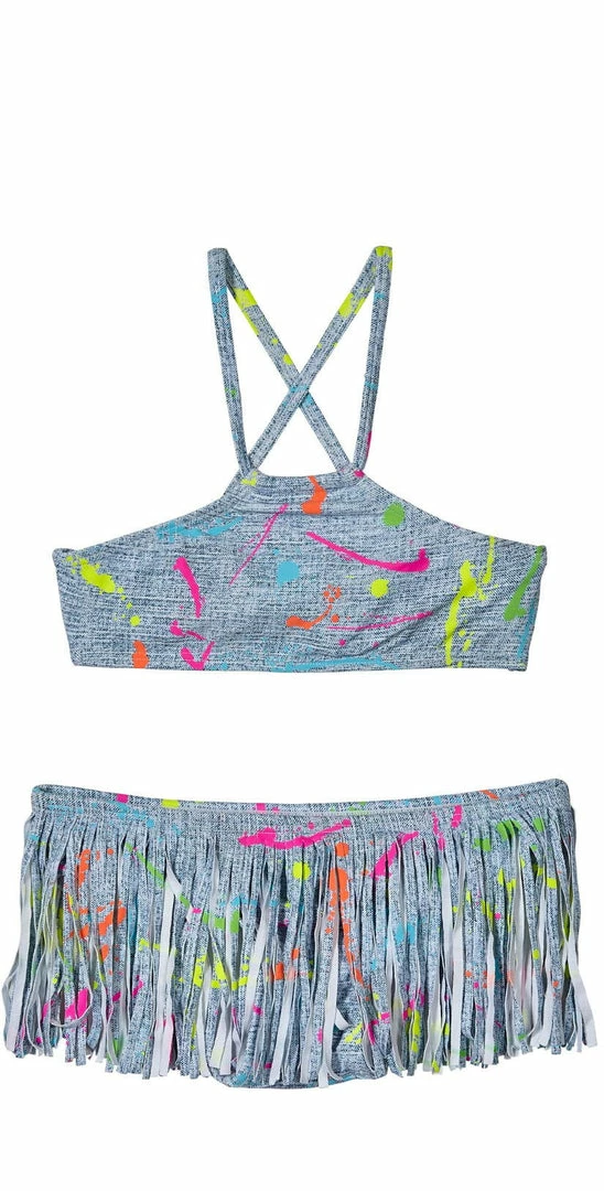PilyQ Girl’s Splatter Paint High Neck Fringe Bikini Set SPL-818B