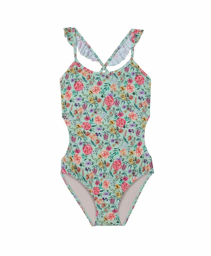 This adorable Kinsley one piece features an open back with ruffled crossed straps. There is no padding and moms can match their daughters in one of the PQ Swim Sprout bikinis for adults!