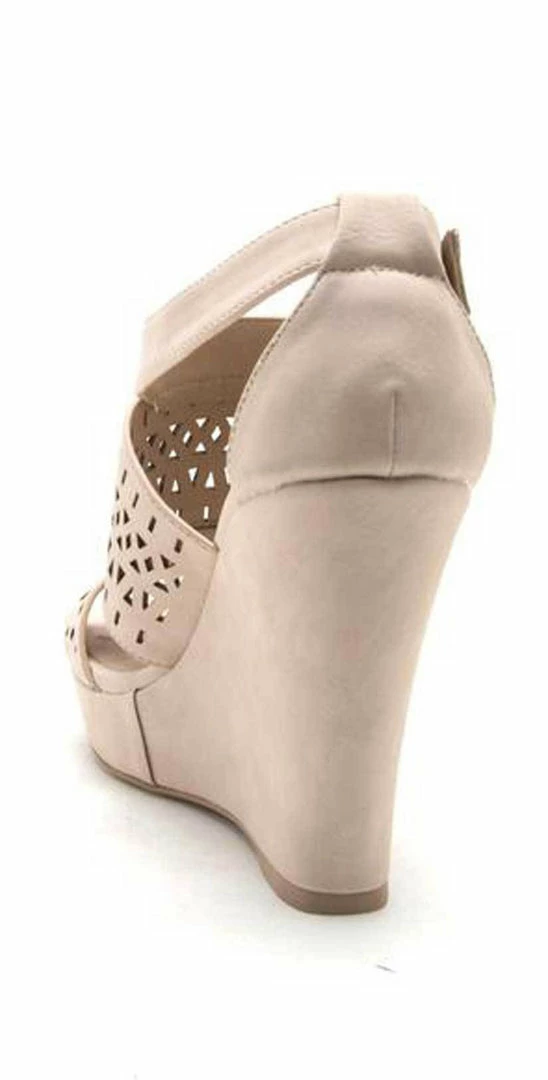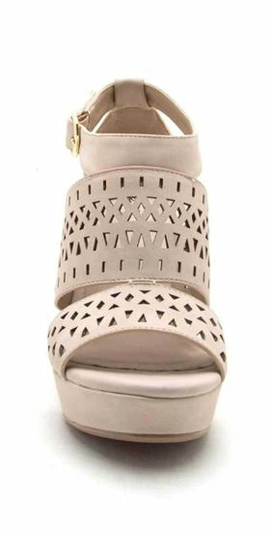 Qupid Shoes Lena Perforated Strappy Wedge in Nude LENA-619 NUDE