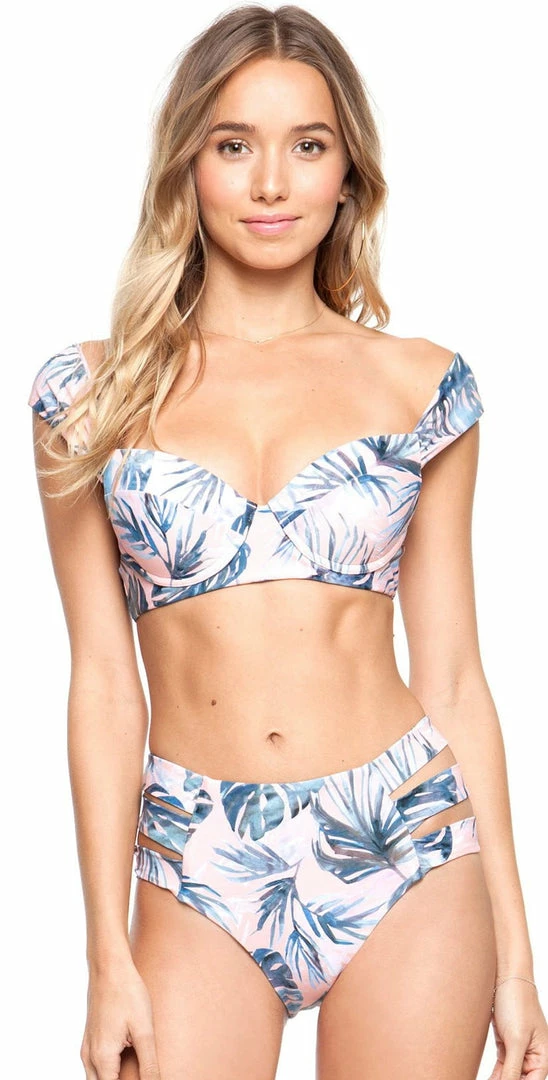 The Tori Praver Amalie Bottom are a peach floral printed, high waist bottom. This bottom features side cut out tabs and a Brazilian cut. Pair with the matching Tori Praver Aimee Top.