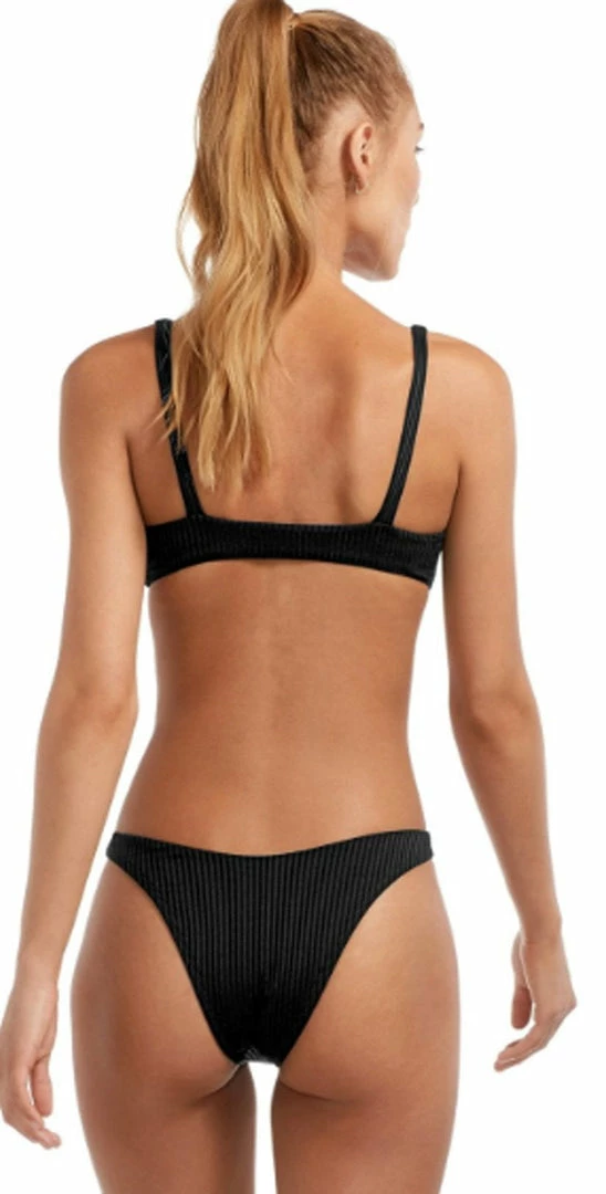 The Vitamin A Black EcoRib Lou Top is a sexy black bikini that ties in the front for a custom fit. This ribbed top is sexy, stretchy and bound to become your new all time favorite bikini. Pair with any EcoRib Bottom in black.